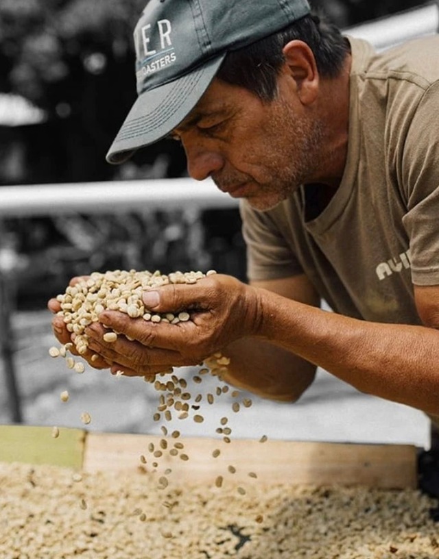 Ecuadorシリーズ② 個人的にEcuadorのSidraがとても甘くて大好きなんです! こちらの豆は、飲んだ時にじゅわぁっと甘さが広がり まるでリンゴのお酒を飲んでいるかのような少し大人な味わいのコーヒーです。 ちょっとリッチな気分になれるので、特別な夜にいかがですか? Anaerobic Washed with mostとは? 収穫後選別し、 チェリーのままで嫌気性発酵を96時間後、チェリーを剝き さらに96時間の嫌気性発酵をモストと一緒に行います。 その後15日間ほどゆっくりアフリカンベッドで乾燥させます。 ※モストは、コーヒーチェリーの発酵過程で生成される果汁のことです。 Country:Ecuador Farm : La Josefina Owner:Leopoldo Andrade Variety : Sidra Altitude : 1500m Processing:Anaerobic Washed with most Flovar:Apple Juce/RoseWine/Plum こちらの農園者さんは、アマゾンの入り口にある県です。奥さんのリヒアさんが2016年から農園をはじめました。グアテマラ人の友人からコーヒー農園を始めたらいいんじゃない?といつも言われていたそうで、いろいろな縁がありコーヒー農園の夢が実現。 周辺の村人たちを雇用し、この土地の自然を守る取り組みをしています。 ------------------------